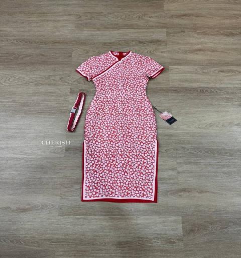 𝘿𝙚𝙩𝙖𝙞𝙡𝙨 :: เดรสยาวคอจีน แต่งกุ๊นแดงสลับชมพูทั้งชุด กระโปรงผ่าข้างขึ้นมาสูง มาพร้อมเข็มขัดเข้าชุด เนื้อผ้าทอลายพื้นแดงสลับดอกขาว มีเท็กเจอร์ดูดีมีมิติ แอบเซ็กซี่คร่า🧧