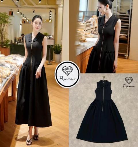 เดรสสีดำแขนกุดเทคเจอร์ผ้าทอสวยมาก เป็นทรงซิปหน้า