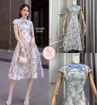 เดรสคลุมเข่าดีเทลแต่งเกาะอกเว้าบนอกแต่งคล้ายเสื้อคลุม แต่เย็บติด