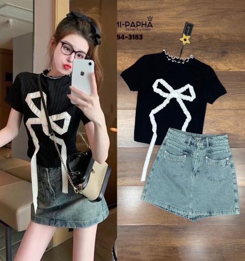 Label :: RAMI-PAPHA(รมิปภา) Detail :: เสื้อ+กระโปรง.กางเกง เสื้อสีดำเนื้อผ้าร่อง ดีเทลด้านหน้าแต่งรูปโบว์ตั๊กล๊ากก เนื้อผ้าหนานิ่มยืดหยุ่นอย่างดี สวมใส่สบาย ++มากับ กระโปรง.กางเกงขาสั้นยีนส์ ฟอกสีสวงยมากคะ กระเป๋าใช้งานได้จริง กระดุมและซิปหน้า