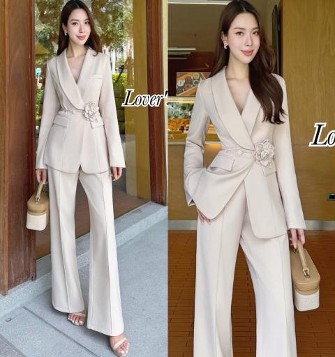 Set 3ชิ้น เสื้อสูท+กางเกงขายาว ลุคCEO เรียบหรูดูผู้ดี
