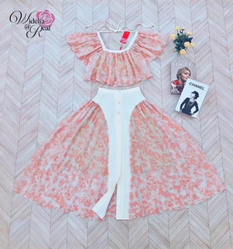 Set เสื้อตัวสั้นทรงปล่อยใส่ง่าย ดีเทลเก๋คอเหลี่ยม ท่อนแขนย้วย