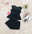Set เสื้อแขนกุด+กางเกงขาสั้น ตัวเสื้อมีเข็มกลัดดอกไม้ 2 ดอก