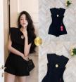 จั้มสูทขาสั้น แขนกุดตัวสวย เก๋ด้วยช่วงอกซ้อนชั้นผ้าคล้ายคลุมไหล่