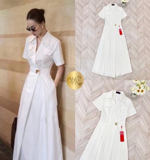 แม็กซี่เดรสตัวยาว คอปกเชิ้ต แขนสั้น ตัวเดรสเย็บเป็นทรงป้าย
