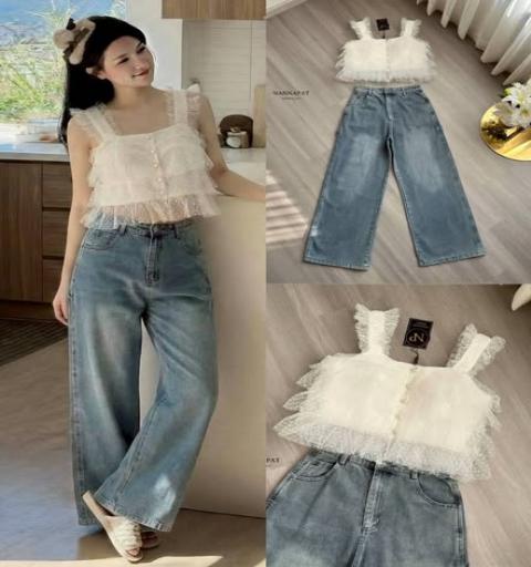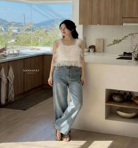 TAG :: NANNAPAT (NP)  CONCEPT :: งานต้อง Premium กำไรน้อยไม่ว่า คุณภาพ เละ เนื้อผ้าต้องดี  ♡DETAILS♡ เสื้อสายเดี่ยวทรง Square Neck ที่เน้นความโปร่งสบาย ผ้าตาข่าย (Tulle) พิมพ์ลายจุด Polka Dot เล็กๆ เพิ่มความขี้เล่น ตกแต่งด้วยระบายเป็นชั้นๆ (Tiered Ruffles) ทั้งตัว รวมถึงช่วงสายเสื้อ เพิ่มวอลลุ่มให้ดูพริ้วไหวและพรางหุ่นได้ดี ด้านหน้าแต่ง กระดุมมุก เรียงยาว เพิ่มความหรูหราแบบคุณหนู มีฟองน้ำอกให้ด้วยนะคะ มาคู่กับ ทรง: กางเกงยีนส์เอวสูง (High-waisted) ช่วยเน้นเอวและทำให้ช่วงขาดูยาวขึ้น ยีนส์แท้ฟอกสีฟ้ายีนส์กลาง (Medium Wash) ที่มีความคลาสสิก เข้าได้กับทุกสีผิว ช่วยเสริมลุคให้ดูทะมัดทะแมงและหุ่นดีแบบสับ!   COLOR 》》》  NP. STANDARD SIZE  ( Size โดยประมาณนะค่ะ + -1") S }} Bust 32"/ Waist 26"/ Hip 36" M }} Bust 34"/ Waist 28"/ Hip 38" L }} Bust 36"/ Waist 30"/ Hip 40" L }} Bust 36"/ Waist 30"/ Hip 40" Langth }} = Shirt 18"/Pants 41"  Care Dry clean only ควรซักแห้ง หรือ ซักมือ และเลี่ยงน้ำยาซักผ้า เพื่อเป็นการถนอมผ้า และ ลดความเสียหายวัสดุตกแต่ง นะคะ  ตรวจสอบสินค้าทุกครั้งก่อนออกจากร้านนะคะ จะได้ไม่เสียเวลาคะ  เปลี่ยนคืนสินค้ามีตำหนิต้องภายใน 10 วันนะคะ ป้ายไม่ตัด ห่อเดิมนะคะ  ได้รับสินค้าแล้ว ถ่ายวีดีโอตอนแกะเช็คสินค้าทุกครั้ง เผื่อมีปัญหา จะได้ใว้ยืนยันเพื่อการเปลี่ยนคืนนะคะ |