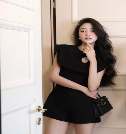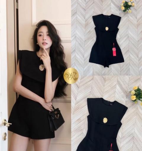 จั้มสูทขาสั้น แขนกุดตัวสวย เก๋ด้วยช่วงอกซ้อนชั้นผ้าคล้ายคลุมไหล่