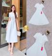 เดรสตัวยาว แขนสั้น คอบัว ซิปหลัง เนื้อผ้าอย่างดี มีน้ำหนัก ใส่สบาย ผ้าเรียบ