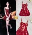 เดรสสายเดี่ยว คอเหลี่ยม เนื้อผ้าลูกไม้ เย็บดอกไม้ป๊อปอัพมาทั้งตัว ซิปหลัง