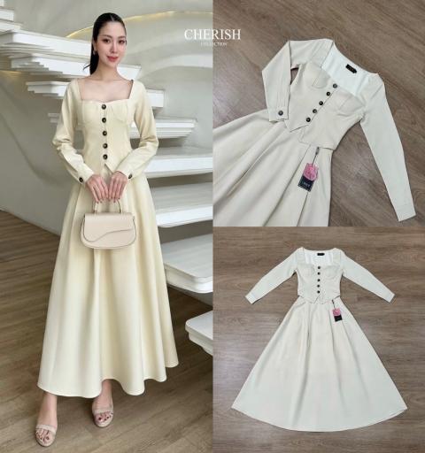 𝘿𝙚𝙩𝙖𝙞𝙡𝙨 :: ชุดเซ็ทคุณหนู ด้วยชุดนี้เลยค่ะ ตัวเสื้อแขนยาวคอเหลียมตกแตกกระดุมหน้ามาพร้อมฟองน้ำอย่างดีและตัวกระโปรงบานเอวสูงใส่แล้วดูบาร์บี้สุดๆ จะใส่ไปคาเฟ่วินเทจหรือใส่ไปดินเนอร์ก็ได้เลยนะค่า🌸