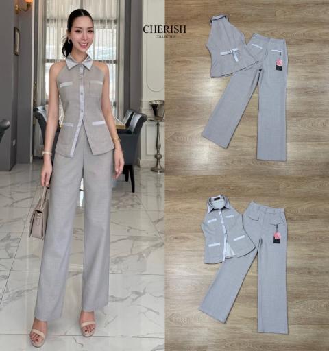 𝘿𝙚𝙩𝙖𝙞𝙡𝙨 :: ชุดเซ็ทสุดหรู ดูแพง ตัวเสื้อคอปกแต่งขอบสีเทาซิลซาตินมาพร้อมกระเป๋าใช้งานได้จริงช่วงเอวก็สามารถปรับให้เข้ารูปได้ ตัวกางเกงเอวสูงขากระบอกทำให้ขาดูเรียวยาวสุดๆ จะใส่ไปไหนรับรองสะดุดตาแน่นอนค่า❤️