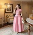 เดรสแขนตุ๊กตาตัวยาวสวย ช่วงตัวเข้ารูป อกแต่งกระเป๋าเพิ่มความเก๋
