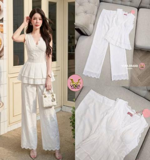 Detail :: Set เสื้อแขนกุดคอวี แต่งขอบลูกไม้ อกมีฟองน้ำจัดทรงให้ค่ะ เอวเข้ารูป ชายเสื้อแต่งระบายชั้น มาพร้อมกางเกงขายาวเข้าชุด ทรงสวย เนื้อผ้าลูกไม้เนื้อดี มีซับในทั้งชุด สามารถแยกแมทช์กับชุดอื่นได้อีกเยอะเลยค่า คุ้มมากๆ ต้องมีติดตู้นะค่า... ใส่ออกมาแล้วเป๊ะเว่อร์ แพทเทรินเนี๊ยบสุดๆ สามารถใส่ได้ในทุกโอกาสเลยค่า...