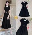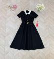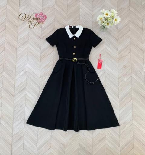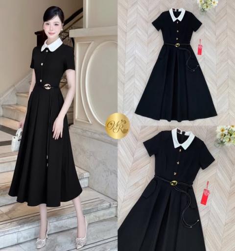 เดรสยาวตัวสวยทรงดี แต่งปกเก๋โดดเด่นสีตัดกับตัวชุด ด้านหน้าแต่งกระดุมทองสวย เอวมาพร้อมสายคาดเอวอะไหล่ทองสวย
