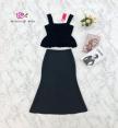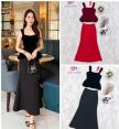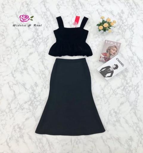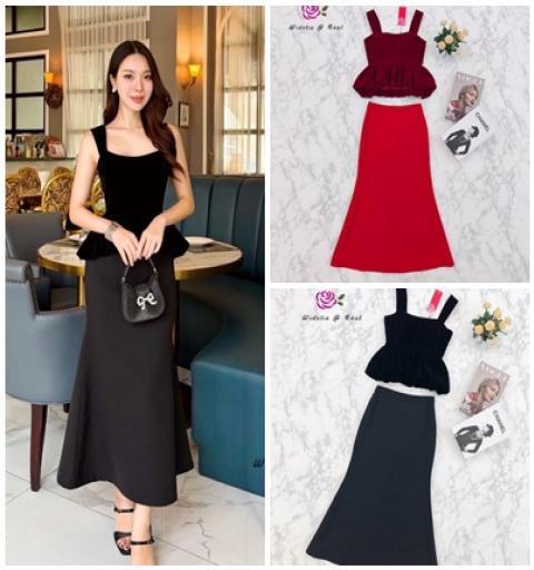 Set เสื้อสายเดี่ยวกับกระโปรงยาว ตัวเสื้อผ้ากำมะหยี่ อกมีฟองน้ำ ชายเสื้อเย็บพอง
