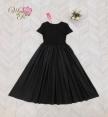 เดรสตัวยาว แขนสั้น ช่วงบนเป็นผ้ายืด ช่วงข้างลำตัวรูดซิป กระโปรงทรงบาน