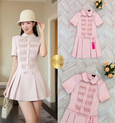 เดรสแขนสั้น คอปก ซิปหลัง อกเย็บจีบ แต่งกระดุม เนื้อผ้าอย่างดี ผ้าหนา มีน้ำหนัก ชุดนี้งานสวยมากๆ