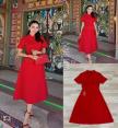 เดรสกระโปรงบานแขนสั้น ดีไซน์คอปก เรียบๆ แต่หรูหรามั๊กกก มีฟองน้ำและซับในอย่างดี