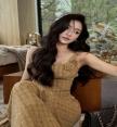 จั๊มสูทขายาว เนื้อผ้าทวีตผสมดิ้งวิ้งโทนสีน้ำตาล ดีเทลด้านหน้าสวยเก๋