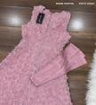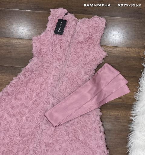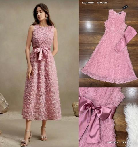 เดรสตัวยาว สวยหรูโดดเด่น เนื้อผ้า3Dทั้งตัวโทนสีชมพูสวยหวาน