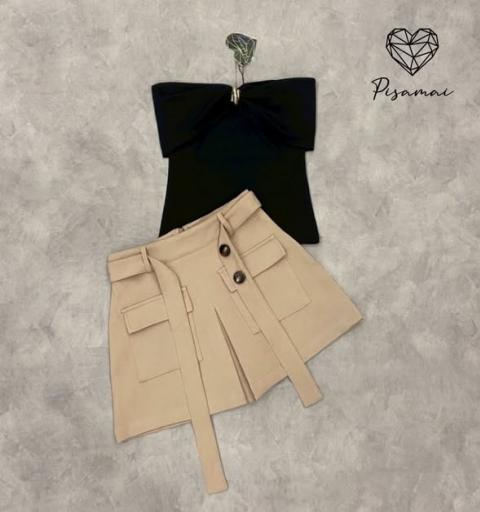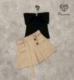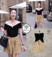 เซ็ตเสื้อปาดไหล่สีดำ ช่วงอกแต่งอะไหล่ทอง