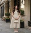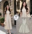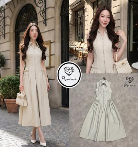 เดรสสีครีมแขนกุดคอปกตัวยาวเป็นทรงซิปหน้า สวย หรู ลูกคุณมากๆค่า