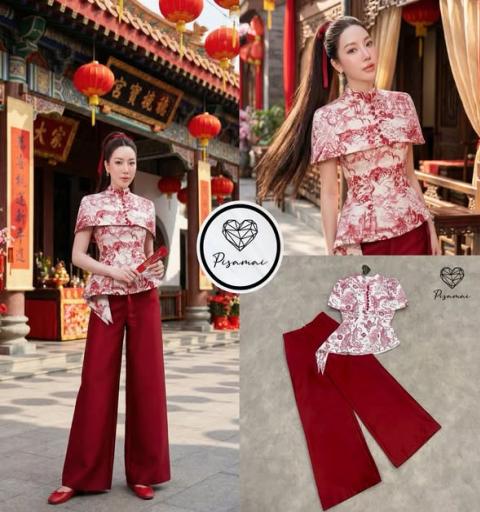 ew Arrivals by PISAMAI  เปิดตัวกี่เพ้าคอลตรุษจีนต้อนรับปี2026 ต้องเก็บเท่านั้น สวย อลังแบบไม่ซ้ำ หาที่ไหนไม่ได้แน่นอน!! Detail :: เซ็ตกี่เพ้าตรุษจีนทรงค้างคาวสกรีนลายกราฟฟิก มาคู่กับกางเกงทรงขาบานสีแดงยาว เทคเจอร์ผ้ามันวาว สั่งทอพิเศษ ใส่สวยมากกกกก ใส่vacayถ่ายรูปกับแก๊งค์เพื่อนๆไม่มีผิดหวังเลยค่า ห้ามพลาดเลยน้าตัวนี้ !  การันตรีงานคุณภาพ คัดติ้งประณีต ใส่ใจทุกรายละเอียดอย่างดี Size S :: 32/26/36 M :: 34/28/38 L :: 36/30/40 Xl::38/32/42 ความยาวเสื้อ : 22 inch ความยาวกางเกง : 42 inch |