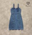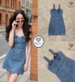 เดรสยีนส์ฟอกตัวสั้นทรงซิปหน้า ดีเท็ลแต่งโบว์คู่น่ารักมากกกก
