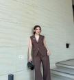 ชุดเซ็ท 2 ชิ้น เสื้อสูทแขนกุดคอปก แต่งกระดุมเงิน มีกระเป๋าหน้า 2 ข้าง
