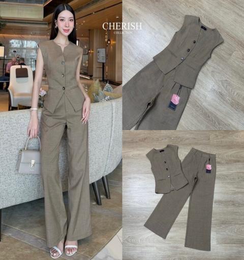เอาใจสาวเท่วัยทำงานกันบ้างค่ะ เซ็ตเสื้อแขนกุดคอวีตกแต่งกระดุมลายหินอ่อน