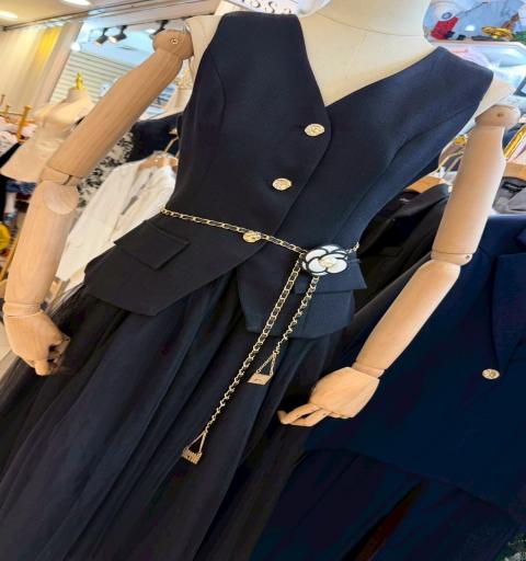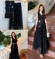 🔺set 4 ชิ้น : เสื้อแขนกุด+กระโปรงมุ้งยาว+ เข็มกลัดดอกไม้+เข็มขัดโซ่
