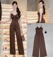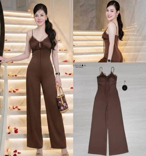 จั้มสูทยาวสายเดี่ยว เสริมลุ๊คเซ็กซี่เบาๆ สีมอคค่า ช่วงอกแต่งลูกไม้