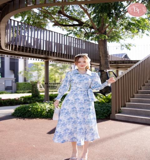 DETAIL : เดรสยาวคลุมเข่าคอปกกระดุมหน้าแต่งแขนยาวปลายแขนสม็อค ตรงกลางเอวแต่งจับจีบระบายเป็นชั้นติดโบ ใช้งานผ่านซิปหลัง มีซับใน งานคุณภาพอย่างดีคัตติ๊งสวย