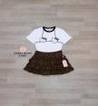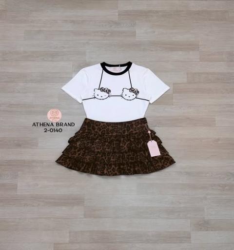 เสื้อยืดคอกลมดีไซน์พิมพ์ลายน่ารัก แมตช์มาคู่กับกระโปรงลายเสือแต่งระบายเป็นชั้นๆ