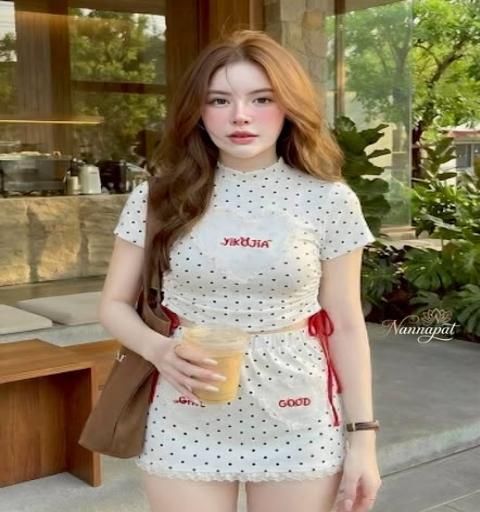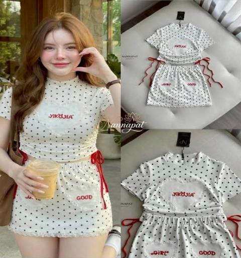 TAG :: NANNAPAT (NP)  CONCEPT :: งานต้อง Premium กำไรน้อยไม่ว่า คุณภาพ เละ เนื้อผ้าต้องดี  ♡DETAILS♡  "ชุดนี้เกิดมาเพื่อรูปที่สวยที่สุดของคุณ!  เตรียมรับยอดไลก์รัว ๆ กับลุค Cafe Hopping ที่ดูแพงและขี้เล่นในเวลาเดียวกัน งานปักรูปหัวใจสุดประณีตตัดกับริบบิ้นสีแดง เพิ่มกิมมิคให้ภาพถ่ายของคุณดูมีชีวิตชีวาขึ้น 100%!"  " เสื้อครอปแขนสั้นทรงคอปีน (Mock Neck) เพิ่มความเก๋ด้วยงานปักรูปหัวใจแต่งระบายลูกไม้กลางอก พร้อมดีเทลเชือกผูกสีแดงด้านข้างลำตัว ปรับความกระชับได้ตามใจชอบ มาคู่กับ กระโปรงสั้นทรงเอ พร้อมซับในกางเกง ใส่แล้วดูขาเรียวสวย มาพร้อมกระเป๋าหน้าทรงหัวใจ 2 ข้าง ปักตัวอักษร "Girl" และ "Good" ชายกระโปรงแต่งขอบลูกไม้สีขาวสุดประณีต ผ้าเนื้อนุ่มยืดหยุ่นใส่สบาย พิมพ์ลายจุด (Polka Dot) สีดำบนพื้นขาวสุดคลาสสิก ให้ลุคที่ดูสะอาดตาแต่มีลูกเล่น ลุคนี้คือความสดใสที่ลงตัวที่สุด"   COLOR 》》》  NP. STANDARD SIZE  ( Size โดยประมาณนะค่ะ + -1") S }} Bust 32"/ Waist 26"/ Hip 36" M }} Bust 34"/ Waist 28"/ Hip 38" L }} Bust 36"/ Waist 30"/ Hip 40" XL }} Bust 38"/ Waist 32"/ Hip 42" Langth }} = Shirt 18"/ Skirt 15.5"  Care Dry clean only ควรซักแห้ง หรือ ซักมือ และเลี่ยงน้ำยาซักผ้า เพื่อเป็นการถนอมผ้า และ ลดความเสียหายวัสดุตกแต่ง นะคะ  ตรวจสอบสินค้าทุกครั้งก่อนออกจากร้านนะคะ จะได้ไม่เสียเวลาคะ  เปลี่ยนคืนสินค้ามีตำหนิต้องภายใน 10 วันนะคะ ป้ายไม่ตัด ห่อเดิมนะคะ  ได้รับสินค้าแล้ว ถ่ายวีดีโอตอนแกะเช็คสินค้าทุกครั้ง เผื่อมีปัญหา จะได้ใว้ยืนยันเพื่อการเปลี่ยนคืนนะคะ |