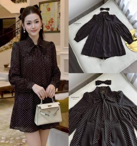 TAG :: NANNAPAT (NP)  CONCEPT :: งานต้อง Premium กำไรน้อยไม่ว่า คุณภาพ เละ เนื้อผ้าต้องดี  ♡DETAILS♡  "สัมผัสเสน่ห์ความคลาสสิกที่ไม่มีวันตกยุค... ชุดเซต Polka Dot จาก NANNAPAT ที่จะเปลี่ยนลุคธรรมดาให้ดูสวยสง่าแบบ 'ลูกคุณหนู' ที่ดูแพง ดีไซน์โบว์ผูกคอและแขนพองที่ช่วยเสริมบุคลิกให้ดูโก้หรู จะกี่ซีซั่นก็ยังดูแพงเสมอ" มินิเดรสทรงคอปีนแต่งโบว์ผูก (Pussy-bow neck) เพิ่มความอ่อนหวานและดูเป็นทางการในเวลาเดียวกัน แขนพองทรงบอลลูน (Balloon Sleeves) ปลายแขนจั๊ม ให้ลุคที่ดูมีความเป็นแฟชั่นนิสต้า ช่วยพรางสายตาและทำให้ลุคดูสดใส มาพร้อมกางเกงขาสั้นสีดำทรงสวย และโบว์ประดับผมลายเดียวกัน (3 Pieces Set) คอมพลีทลุคได้เป๊ะปังที่สุด"   COLOR 》》》  NP. STANDARD SIZE  ( Size โดยประมาณนะค่ะ + -1") S }} Bust 32"/ Waist 26"/ Hip 36" M }} Bust 34"/ Waist 28"/ Hip 38" L }} Bust 36"/ Waist 30"/ Hip 40" XL }} สินค้าหมดคะ Langth }} = Mini dress 31" / Pants 14"  Care Dry clean only ควรซักแห้ง หรือ ซักมือ และเลี่ยงน้ำยาซักผ้า เพื่อเป็นการถนอมผ้า และ ลดความเสียหายวัสดุตกแต่ง นะคะ  ตรวจสอบสินค้าทุกครั้งก่อนออกจากร้านนะคะ จะได้ไม่เสียเวลาคะ  เปลี่ยนคืนสินค้ามีตำหนิต้องภายใน 10 วันนะคะ ป้ายไม่ตัด ห่อเดิมนะคะ  ได้รับสินค้าแล้ว ถ่ายวีดีโอตอนแกะเช็คสินค้าทุกครั้ง เผื่อมีปัญหา จะได้ใว้ยืนยันเพื่อการเปลี่ยนคืนนะคะ |