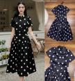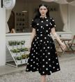 ชุดเซตลายจุด เซตสีดำลายจุดขาว เนื้อผ้าสวย ด้านหน้าแป๊กตัวใหญ่สามจุด
