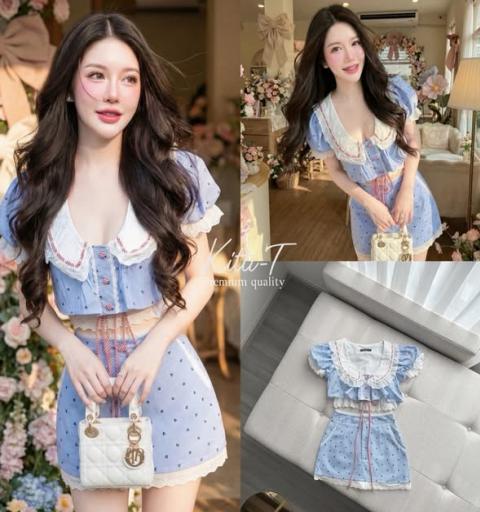 Set (2) ชิ้น เสื้อ+กระโปรง สไตล์โทนฟ้าใส สไตล์คุณหนูหวานๆ
