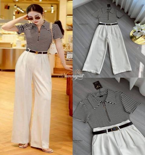 TAG :: NANNAPAT (NP)  CONCEPT :: งานต้อง Premium กำไรน้อยไม่ว่า คุณภาพ เละ เนื้อผ้าต้องดี  ♡DETAILS♡  "Less is More ที่แท้ทรู!   แมทช์ลุคสวยแพงสไตล์ Old Money ให้คุณดูโดดเด่นแบบไม่ต้องพยายาม เสื้อลายขวางทรงเป๊ะเข้าคู่กับกางเกงเอวสูงปรี๊ดพรางหุ่น พรางพุง เสกขาเรียวยาวแบบสับๆ ออร่าคุณหนูจับทุกลุค ไม่ว่าจะเดินคาเฟ่ชิลๆ หรือไปดินเนอร์ก็เอาอยู่หมด!"  " เสื้อคอปกแต่งซิปหน้าสีทองสุดหรู สามารถรูดปรับระดับความลึกของคอเสื้อได้ตามใจชอบ (รูดลงนิดๆ ช่วยให้ช่วงคอดูยาวระหง ไม่ตัน) แพทเทิร์นลายขวาง (Striped) ขาว-ดำ สุดคลาสสิก อมตะตลอดกาล ไม่มีเอ้าท์ เนื้อผ้ามีความยืดหยุ่นเข้ารูปพอดีตัว ไม่อึดอัด กางเกงขายาวโทนสีครีม/ออฟไวท์ ให้ความรู้สึกละมุนตาและดูสะอาดสะอ้าน ดีไซน์เอวสูง เก็บหน้าท้องได้เนียนกริบ พร้อมจับจีบด้านหน้าช่วยเพิ่มดีเทลให้ทรงกางเกงดูสวยทิ้งตัว ทรงขากระบอกใหญ่/ขาบาน (Wide-leg) ช่วยพรางต้นขาและน่อง เดินแล้วพริ้วสวย สร้างภาพลักษณ์ให้ช่วงขาดูยาวและเพรียวขึ้นทันที พร้อมเข็มขัด ช่วยเน้นคอดเอวให้ชัดขึ้น และดึงลุคให้ดูคอมพลีท สวยแพงระดับ 10/10 สาวมั่น สวย แพง แบบ Effortless... ของมันต้องมีติดตู้จริงๆ ค่ะ!"    COLOR 》》》  NP. STANDARD SIZE  ( Size โดยประมาณนะค่ะ + -1") S }} Bust 32"/ Waist 26"/ Hip 36" M }} Bust 34"/ Waist 28"/ Hip 38" L }} Bust 36"/ Waist 30"/ Hip 40" XL }} Bust 38"/ Waist 32"/ Hip 42" Langth }} = Shirt 23"/Pants 41"  Care Dry clean only ควรซักแห้ง หรือ ซักมือ และเลี่ยงน้ำยาซักผ้า เพื่อเป็นการถนอมผ้า และ ลดความเสียหายวัสดุตกแต่ง นะคะ  ตรวจสอบสินค้าทุกครั้งก่อนออกจากร้านนะคะ จะได้ไม่เสียเวลาคะ  เปลี่ยนคืนสินค้ามีตำหนิต้องภายใน 10 วันนะคะ ป้ายไม่ตัด ห่อเดิมนะคะ  ได้รับสินค้าแล้ว ถ่ายวีดีโอตอนแกะเช็คสินค้าทุกครั้ง เผื่อมีปัญหา จะได้ใว้ยืนยันเพื่อการเปลี่ยนคืนนะคะ |