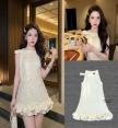 คอกลมแขนกุด แต่งโบว์สีครีม ทรงตรงปลายกระโปรงบาน