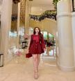 เดรสแขนยาวตัวสั้นสวยตัวเดรสมาในผ้าทวิตเนื้อสวย รอบคอจีบระบายสวย