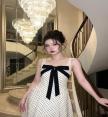 เดรสแขนกุดตัวยาวสวยทรงดี เก๋ไก๋ด้วยช่วงอกแต่งโบโดดเด่น