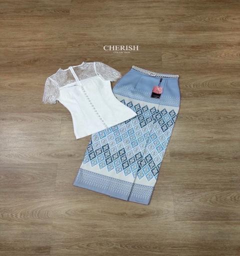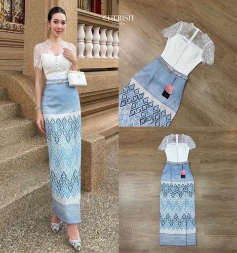 สุด Hot เซ็ทชุดไทย 3 ชิ้น ตัวเสื้อลูกไม้ซีทรูด้านบน พร้อมซับใน
