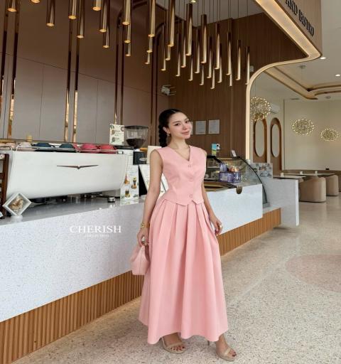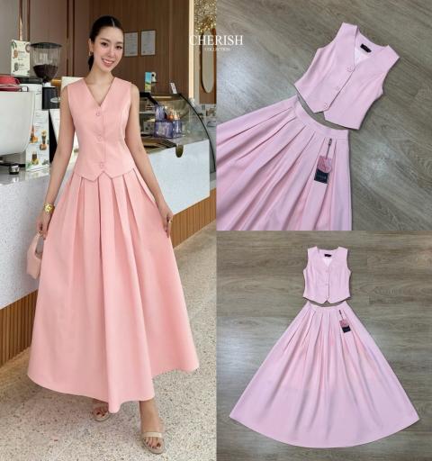 𝘿𝙚𝙩𝙖𝙞𝙡𝙨 :: ชุดเซ็ท เสื้อกั๊กแขนกุดตกแต่งกระดุม เข้ารูป มาพร้อมกระโปรงบานตัวยาวจับจีบรอบ ใส่แล้วช่วงขาดูยาวสวยสะกดมากค่ะ ต้องมีนะคะ