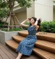 เดรสยีนส์คอปกแขนกุดตัวยาว งานกระดุมด้านหน้า แต่งลายดอกทั้งชุด