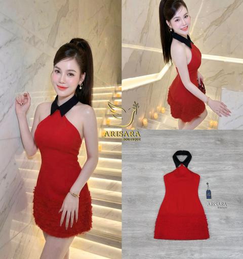 มินิเดรสแต่งปกดำ ชายระบาย มีฟองน้ำเสริมทรง