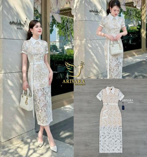 ชุดเดรสลูกไม้ ผ้างานเกาหลี มาพร้อมเข็มขัด