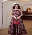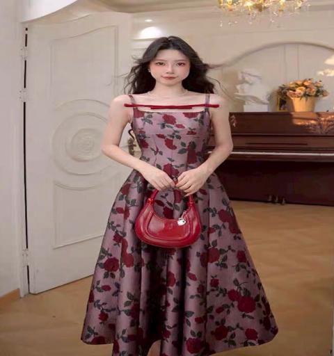 Dress ยาวตัวสวยทรงดี ตัวเดรสเลือกใช้ผ้าทอเนื้อสวยลายดอกกุหลาบสีสวยโดดเด่น