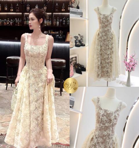 Dress ยาวตัวสวยทรงดี ตัวเดรสเลือกใช้ผ้าลูกไม้เนื้อสวย