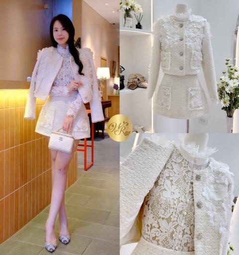 Detail >> Set 3 ชิ้น ทรงเก๋ สไตล์แบรนด์ Hi end เสื้อลูกไม้คอระบายตัวสวยด้วยผ้าลูกไม้ซีทรูเนื้อนุ่มสวยแต่งกระดุมมุข พร้อมเสื้อคลุมแขนยาวตัวนอกแต่งดอกไม้ Pop up กระจายทั่วตัวเสื้อ ด้านหน้าแต่งกระดุมเพชรเม็ดโตโดดเด่น คอมพลีทลุคด้วยกระโปรงตัวสั้นสวยแต่งกระเป๋า ตัวชุดมาในผ้าทวิตเนื้อสวย จับ Match ลุคดูดีสุดๆ ชุดนี้งานสวยมากค่ะ รับรองใส่ออกมาคอมพลีทลุคสุดๆ #ชุดเรียบหรู #ชุดสาวแกรม #ชุด 3ชิ้น #เดรสผ้าทวิต#ชุดluxury #ชุดแบรนด์Widelia@real